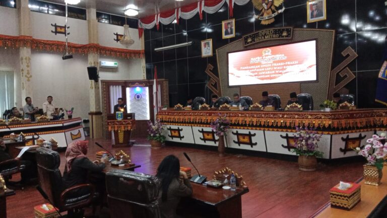Rapat paripurna yang dipimpin langsung oleh Ketua DPRD Metro Tondi MG Nasution tersebut digelar di Ruang Sidang DPRD setempat, Jumat (19/4/2024).