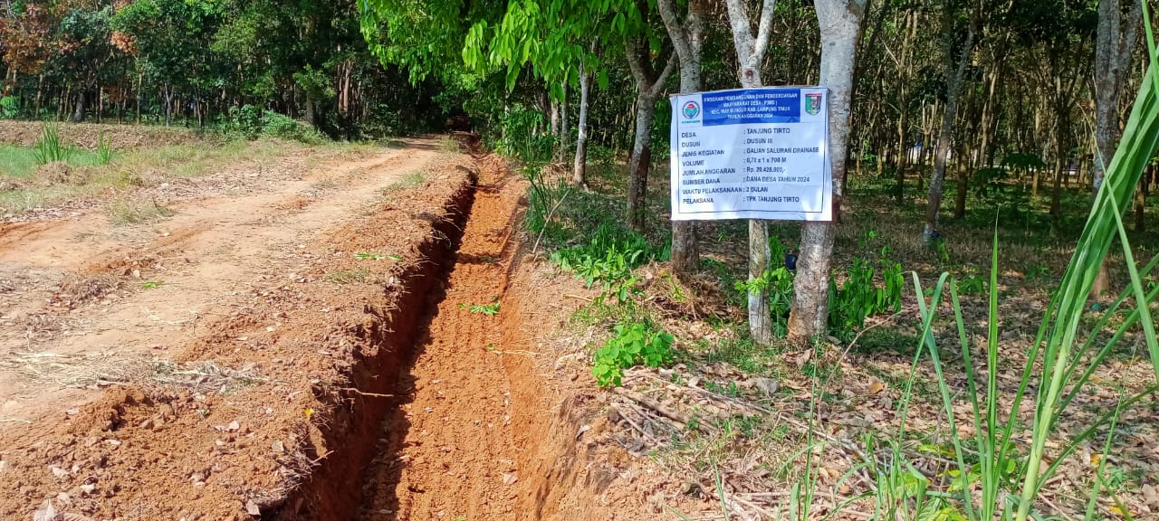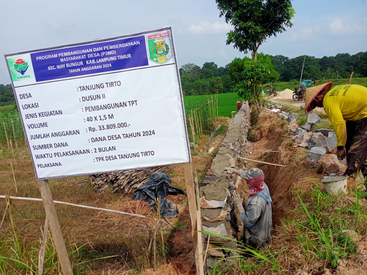 Pembangunan tersebut bersumber dari anggaran dana desa Tahun Anggaran 2024 yang berkesempatan di Desa Tanjung tirto Kecamatan Way Bungur Kabupaten Lampung Timur.