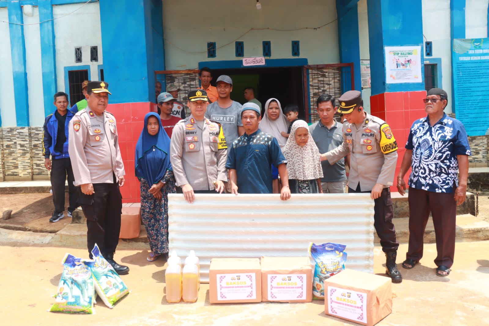 Kapolres Lam-tim AKBP Benny Prasetya  Berikan Bantuan Sosial kepada Korban Bencana Alam Sukadana Tengah
