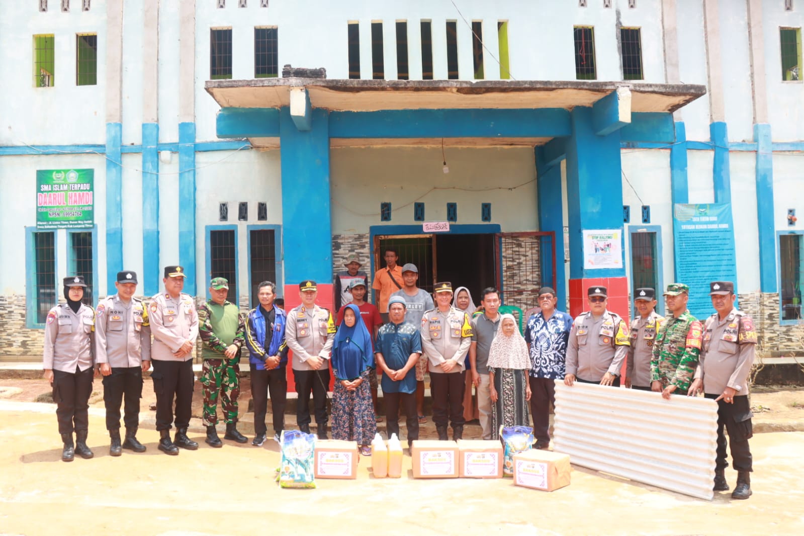Bantuan yang diberikan berupa sembako, kebutuhan pokok, serta material bangunan untuk membantu memperbaiki kerusakan pada pondok pesantren dan rumah-rumah warga. Selain itu, Polres Lampung Timur juga mengerahkan personel untuk membantu warga membersihkan puing-puing dan memperbaiki bangunan yang rusak.